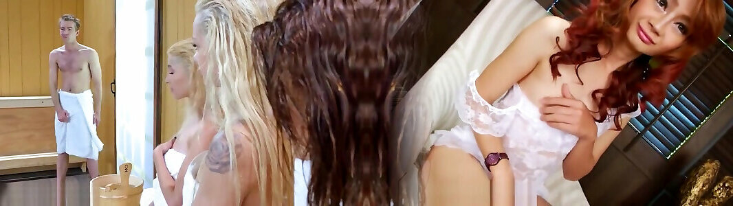 tres adolescentes novios comparten un monstercock duro en una sauna