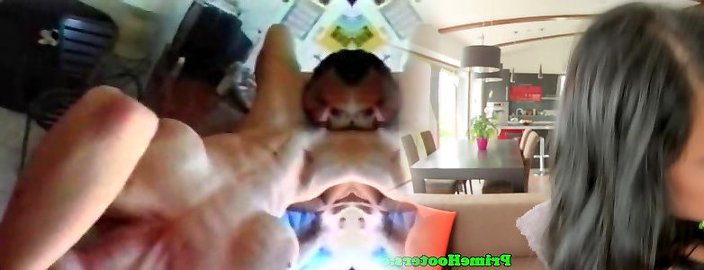 Two ladies sharing one sex toy during captured lesbo masturbation