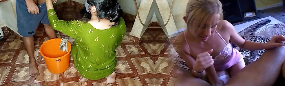 the sitter was cleaning fucktoys at home and arched over rear end, picked up her robe and boned