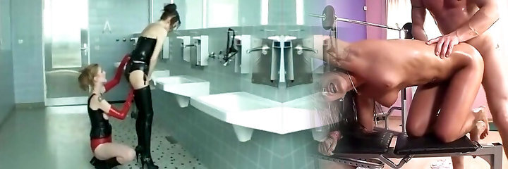 Bathroom fuckfest with lesbians who love tight spandex fuck