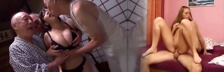 Huge-chested Biotch Gangbanged by Aged Men to Internal Ejaculation and Cum on Hooters