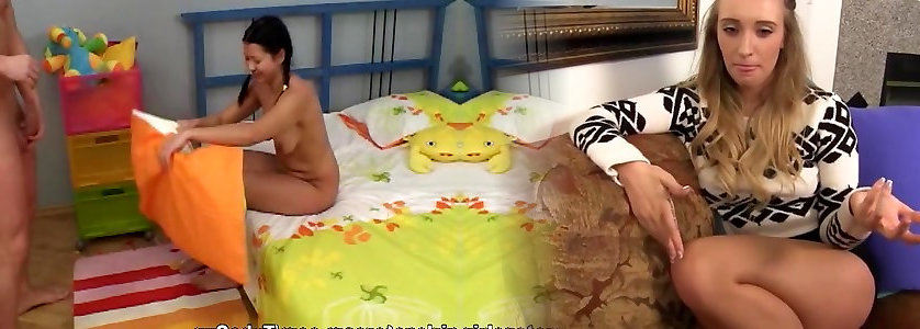 Pretty Slim Black-haired Lesbian Step-sisters Finally Give Vent to Their Passion