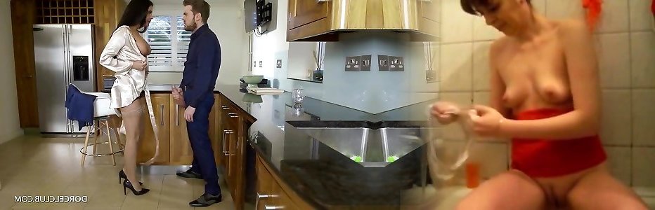 Sexy dark-haired milf with yam-sized globes is providing a deep throat to her sisters hubby, in the kitchen